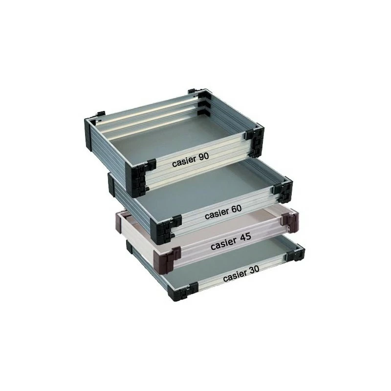 – Hauteur variable selon les modèles (par exemple 1 casier 90 a une hauteur de 90mm).