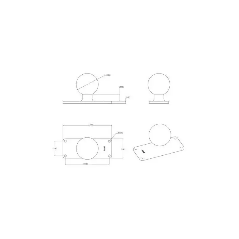 Base rectangle 5,08 x 12.70 cm boule D (5.71 cm de diamètre)