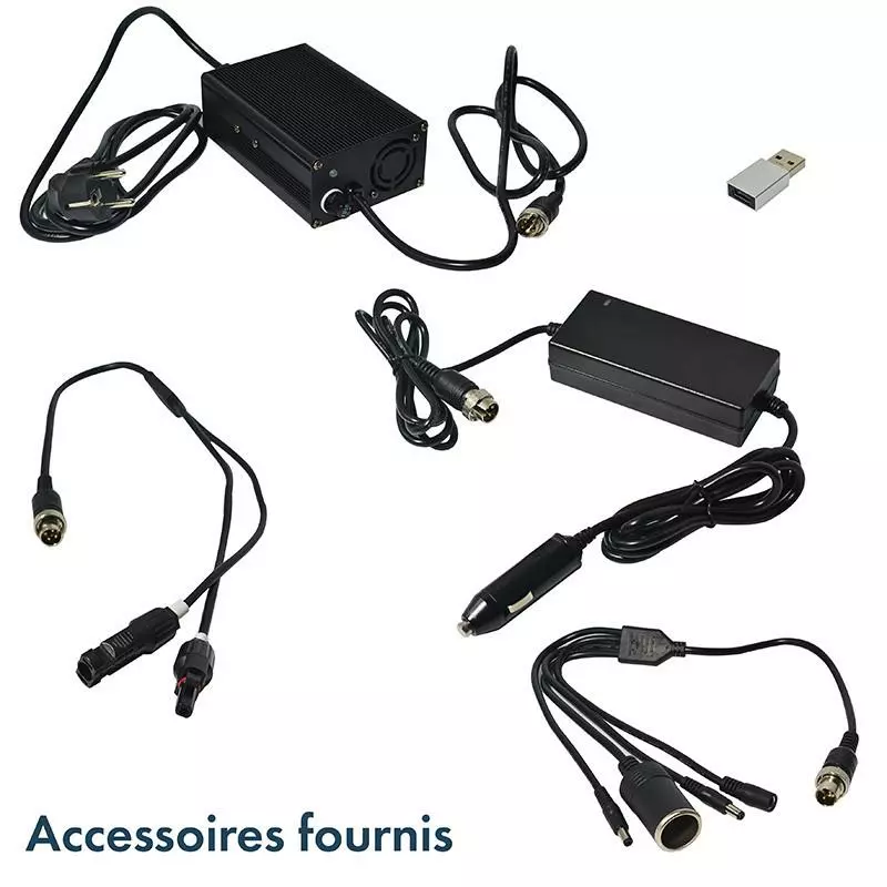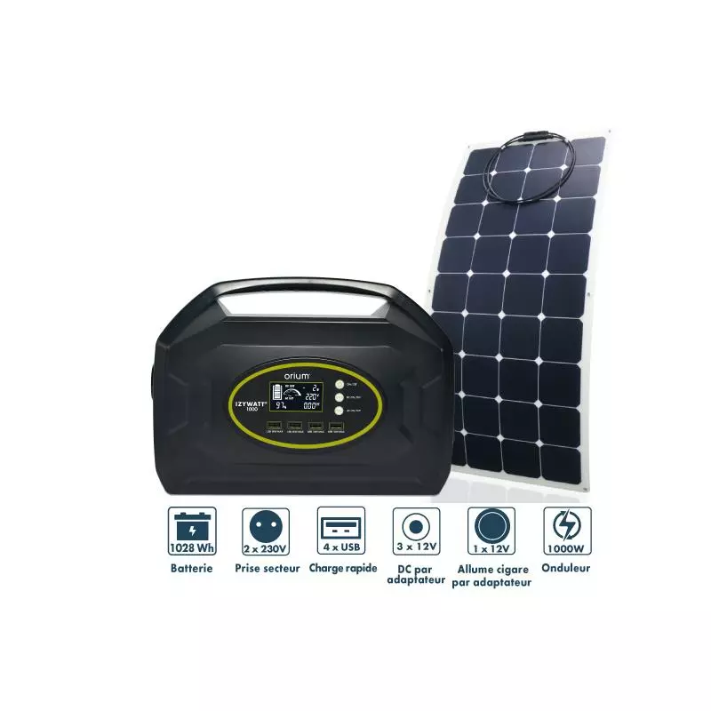 Petit groupe électrogène solaire : branchez-le à un panneau pliant 120W (réf. 39154) ou semi-rigide 120W (réf. 39155) afin de le rendre totalement autonome (compter entre 10 et 12h sous les rayons du soleil)
